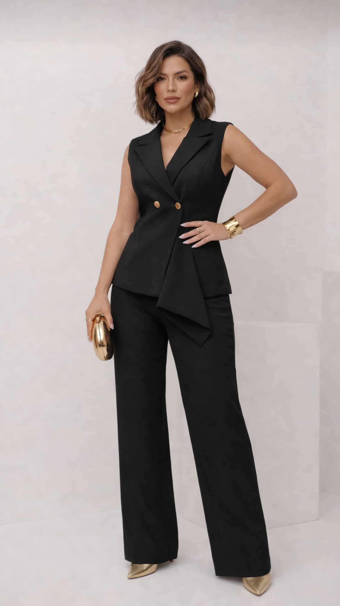 Terno feminino sem manga - 97% poliéster e 3% elastano.